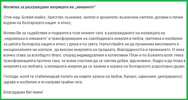 Предлагаме ви едно послание към Вселената, което ще счупи матрицата, която ви пречи по пътя към свободата да имате всичко, което желаете. Сайтът astro.ourplanet.cc публикува молитва, която е в синхрон с настоящите енергии на трансформация. По този начин вие ще спрете да си задавате въпроса как се става богат.