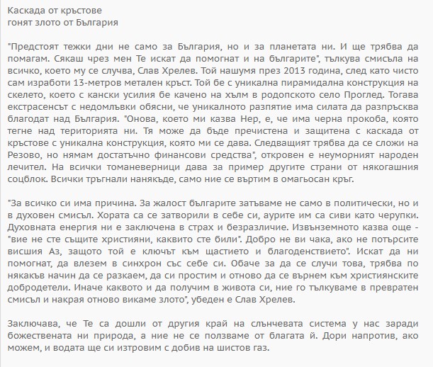 След всичко написано по-горе някои читатели ще реагират остро, даже ще кажат, че това са пълни глупости. Други ще останат безразлични, а трети ще бъдат доволни да научат онова, което споделя с нас лечителят Слав Хрелев.